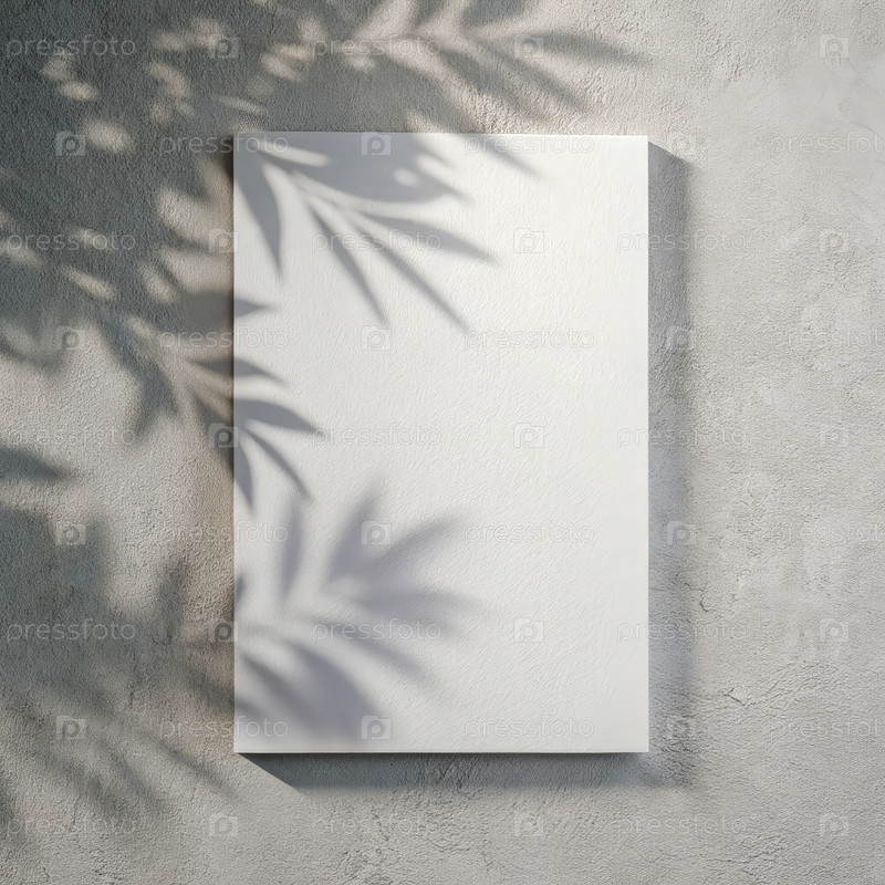 Пустой лист белой бумаги с тенями листьев на бетонной стене