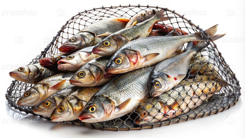 Свеже пойманная рыба в сети. генеративный ИИ