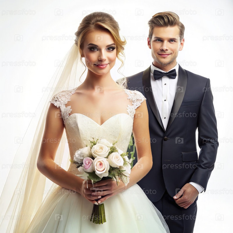 Портрет невесты и жениха на белом фоне