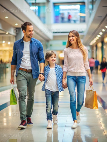Счастливая семейная покупка в торговом центре. генеративный ИИ
