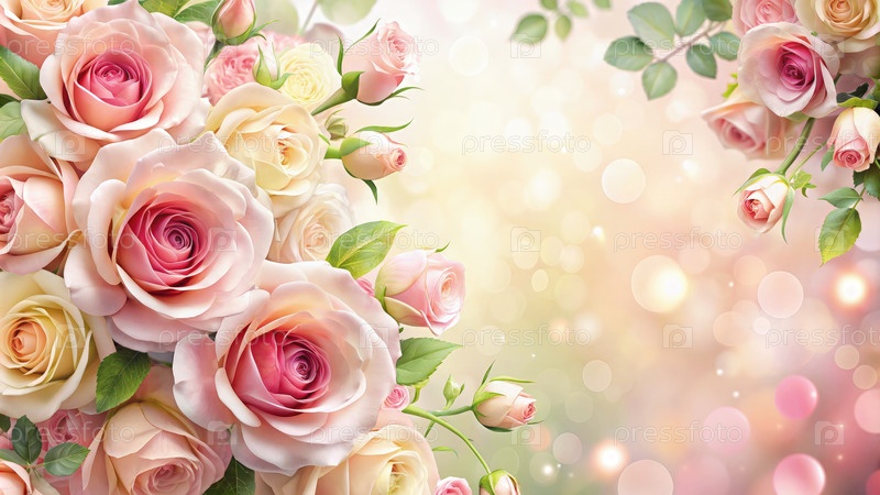 Деликатные розовые и белые розы с мягким фоном боке
