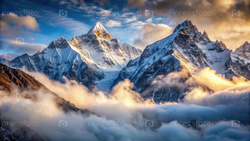Величественные вершины Гималаев, окутанные туманным закатом