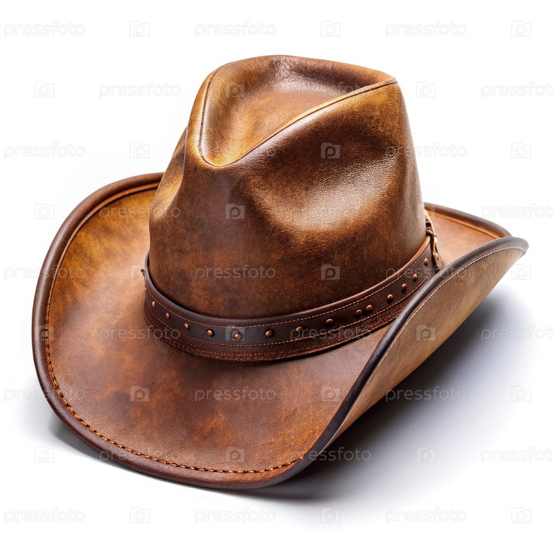 Рустичная коричневая кожаная ковбойская шляпа на белом фоне