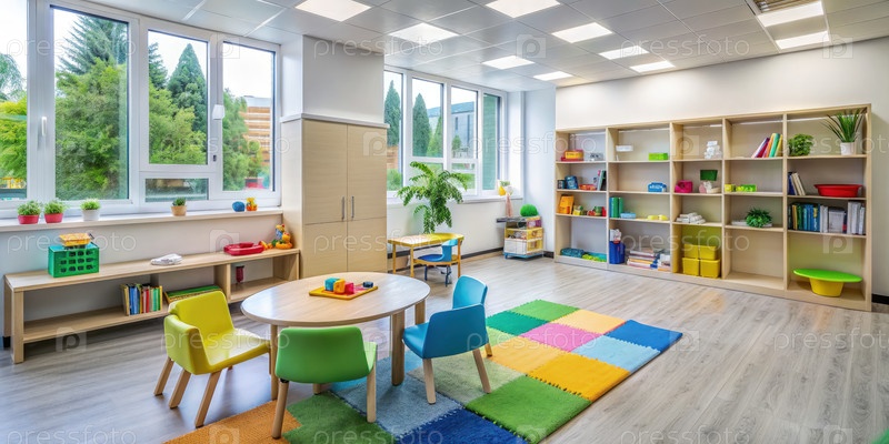 Ярко окрашенная игровая зона в детской клинике
