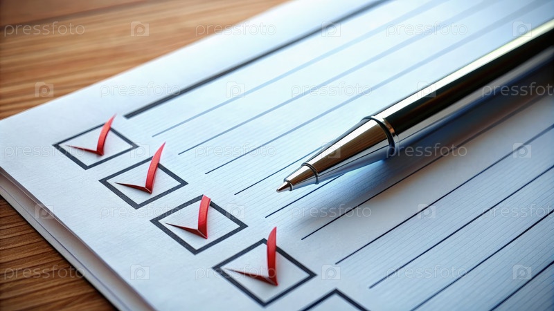 Близкий взгляд на контрольный список и ручку на деревянном столе