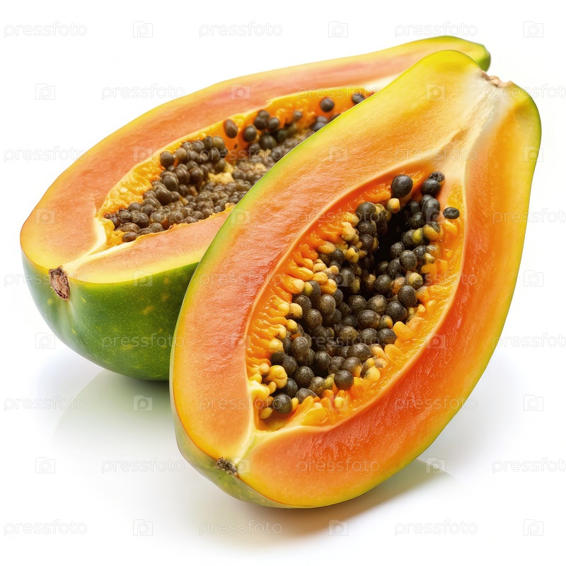 Зрелая папая наполовину на белом фоне