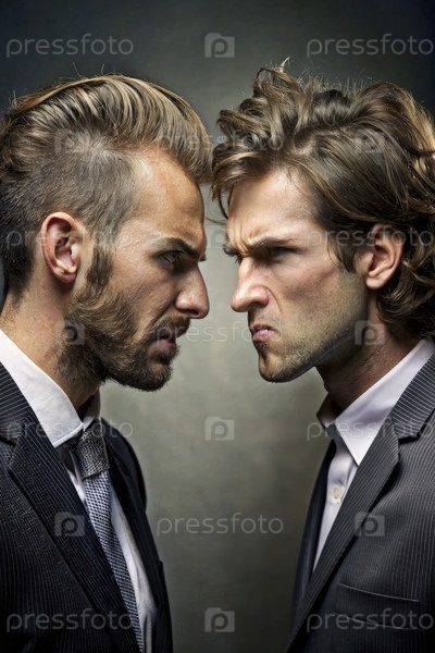Два мужчины в костюмах пристально смотрят друг на друга