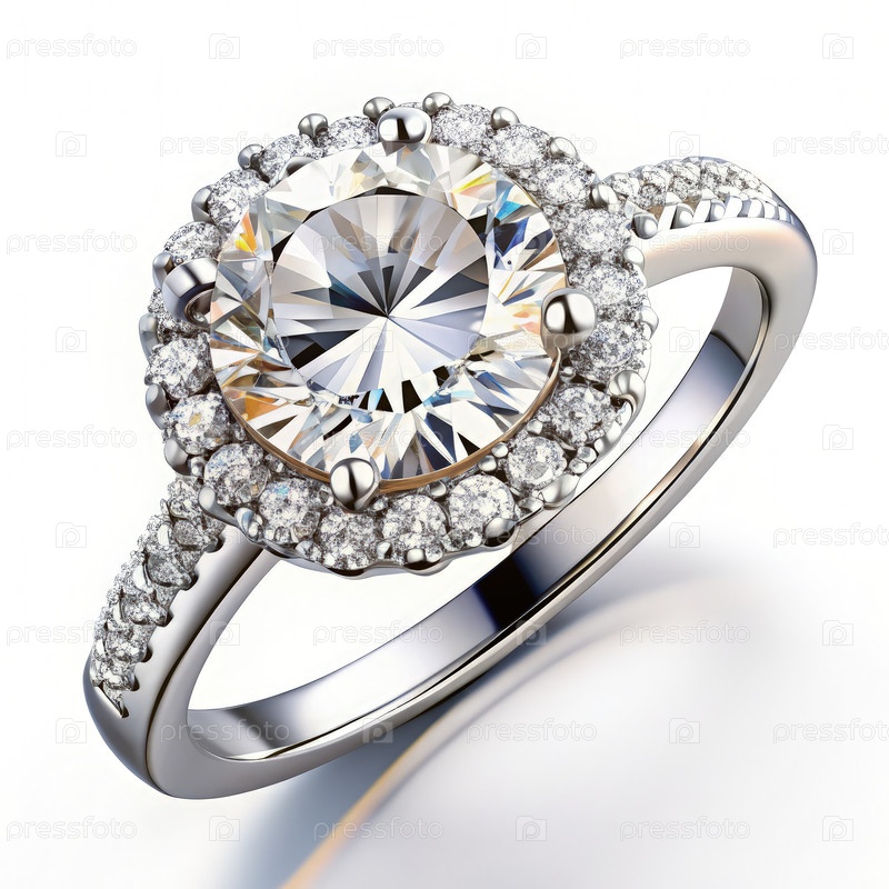 Sparkling Halo Diamond Ring на белом фоне. генеративный ИИ