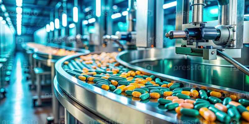 Автоматизированная линия производства таблеток на современной фармацевтической фабрике