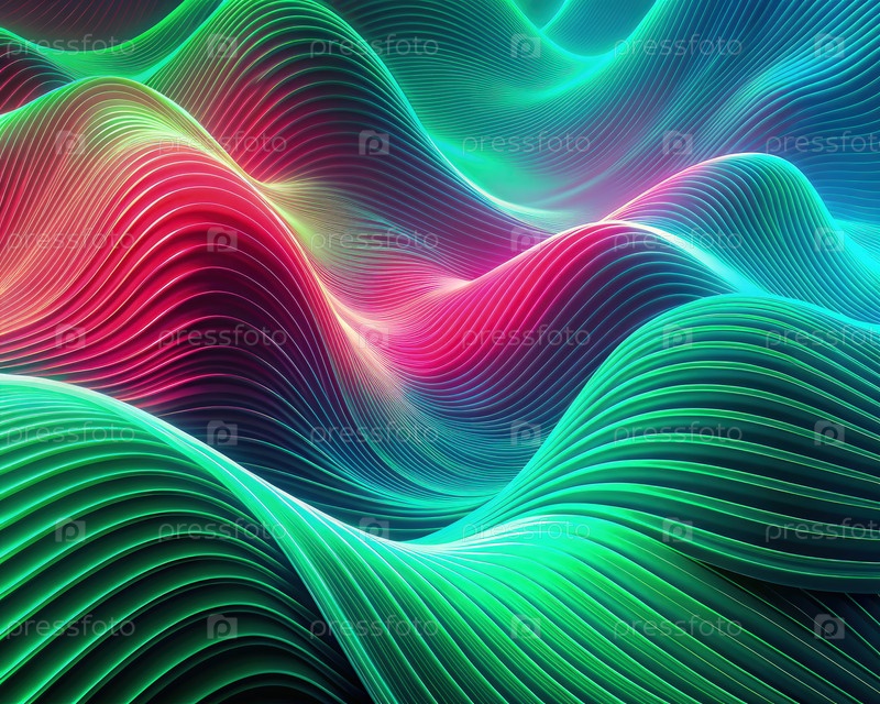 Абстрактные зеленые и синие волновые линии в пространстве. генеративный ИИ