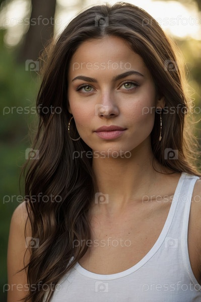 Женщина с длинными коричневыми волосами, носящая белый танковый топ в естественной обстановке