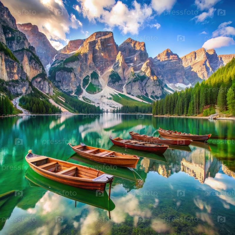 Спокойные лодки на нетронутых водах озера Брайес в Доломитах