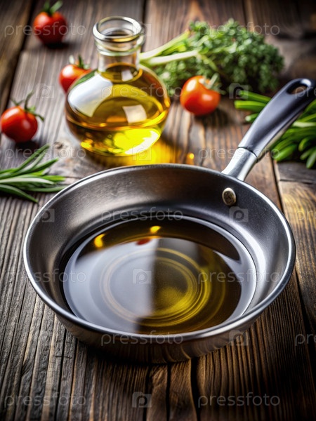 Стеллаж, заполненный маслом и готовый к приготовлению пищи на деревянном столе