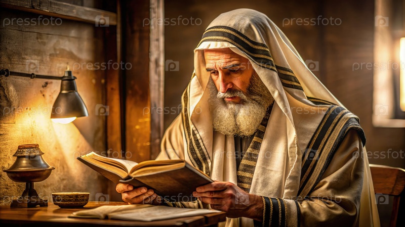 Еврейский ученый изучает еврейские тексты при свечах