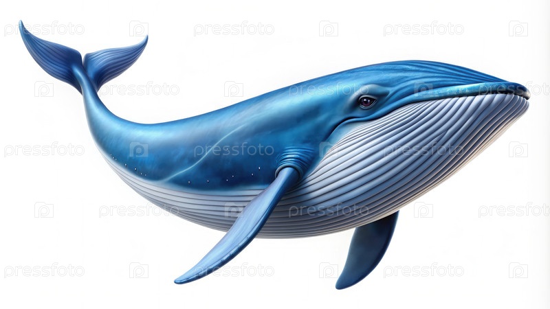 Кит плавает на белом фоне. генеративный искусственный интеллект синий