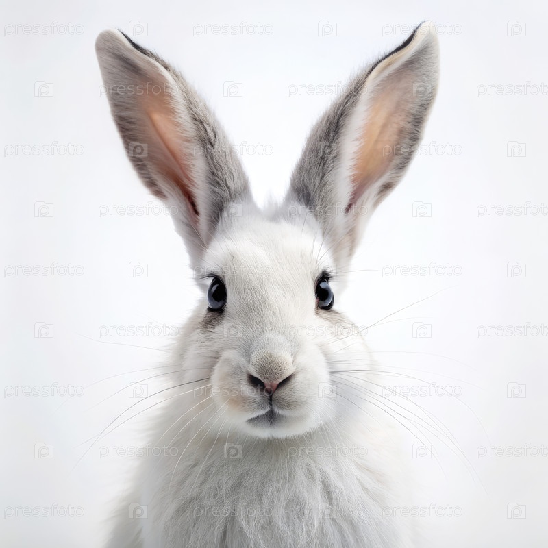 Близкий портрет белого кролика на белом фоне
