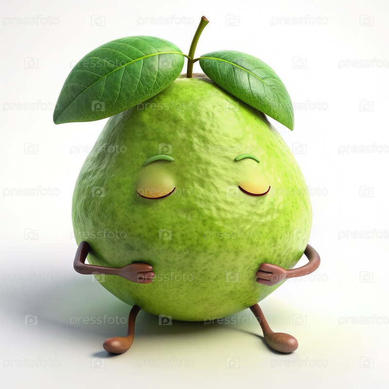 Спящий персонаж гуавы с зелеными листьями и крошечными ногами