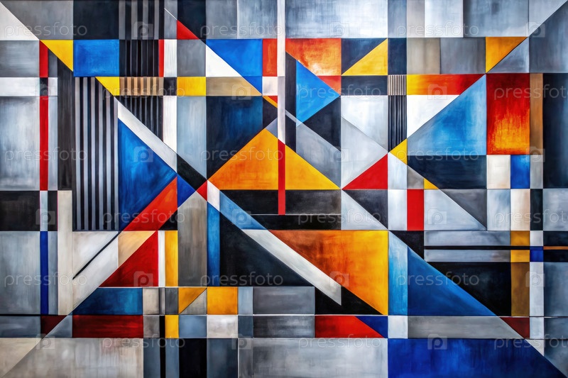 Абстрактная геометрическая живопись с яркими цветами и смелыми формами