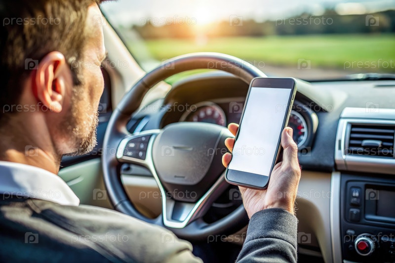 Ближайшее изображение рукой водителя, держащего смартфон в машине. генеративный ИИ