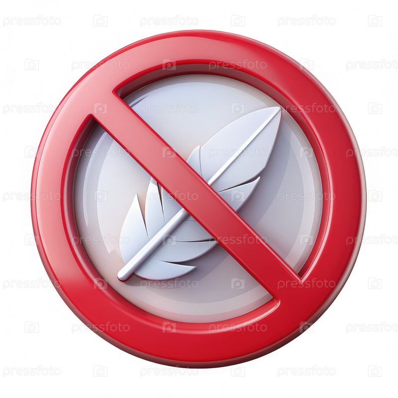 3D Красный знак круга с перьями и диагональной красной линией: без символа перьев