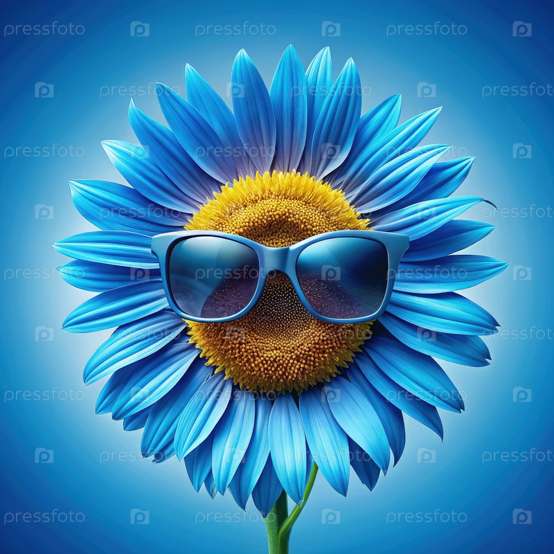 Голубая подсолнечник, носящая солнцезащитные очки в летней позе