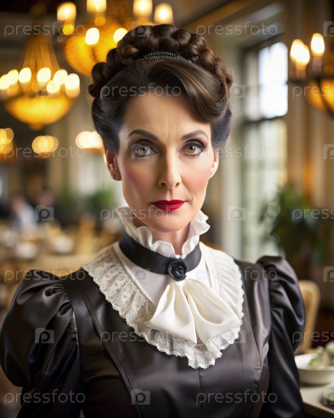 Женщина с смелым макияжем позирует в элегантной блузке