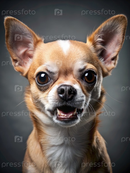 Близкий портрет злой чихуахуа с открытым ртом. генеративный ИИ