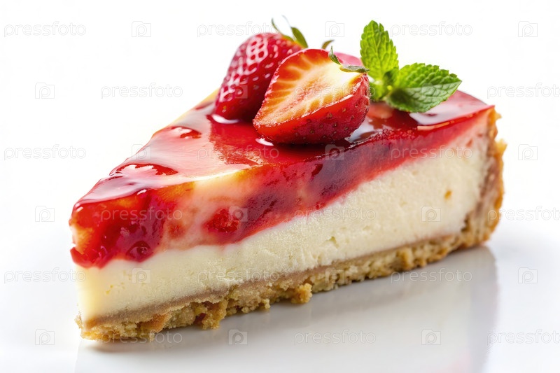 Слиток клубничного сырного пирога со свежим мятом. генеративный ИИ