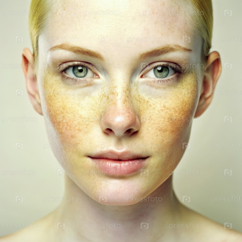 Близкий портрет молодой женщины с веснушками