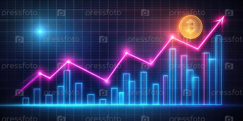 График неоновой линии, изображающий рост и тенденции криптовалют. генеративный ИИ