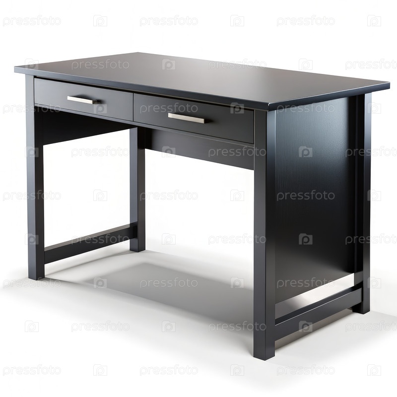 Черный стол с двумя ящиками на белом фоне