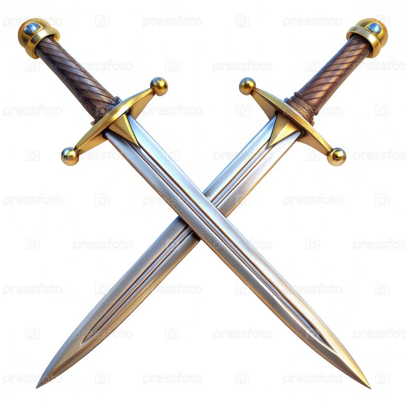 Два скрещенных меча со золотыми акцентами и деревянными рукоятками