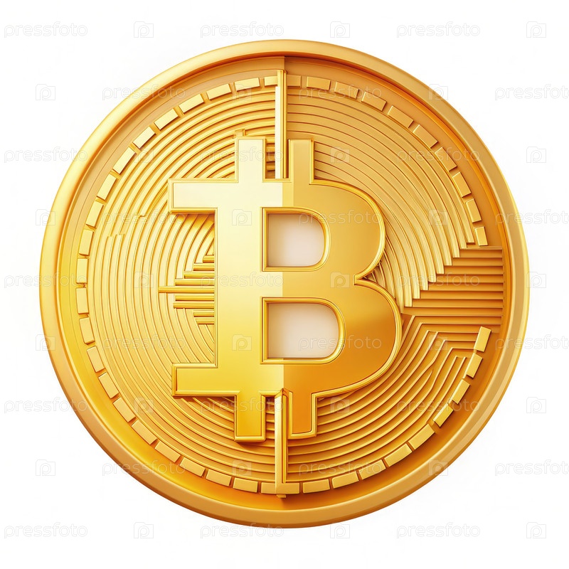 Иллюстрация золотой монеты Bitcoin на белом фоне. генеративный ИИ