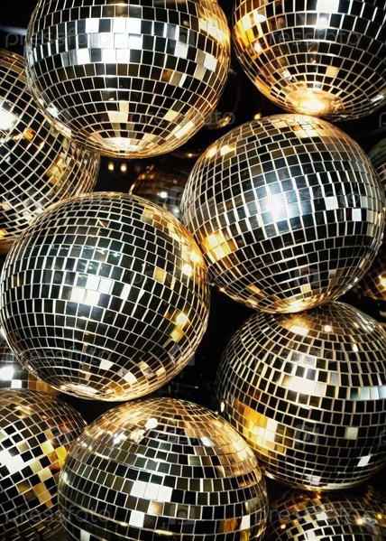 Близкий взгляд на несколько диско балов в шикарной ретро обстановке