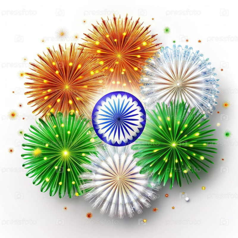 Красочные фейерверки, демонстрирующие национальные цвета Индии