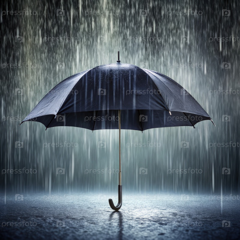 Черный зонтик под сильным дождем в мрачный день