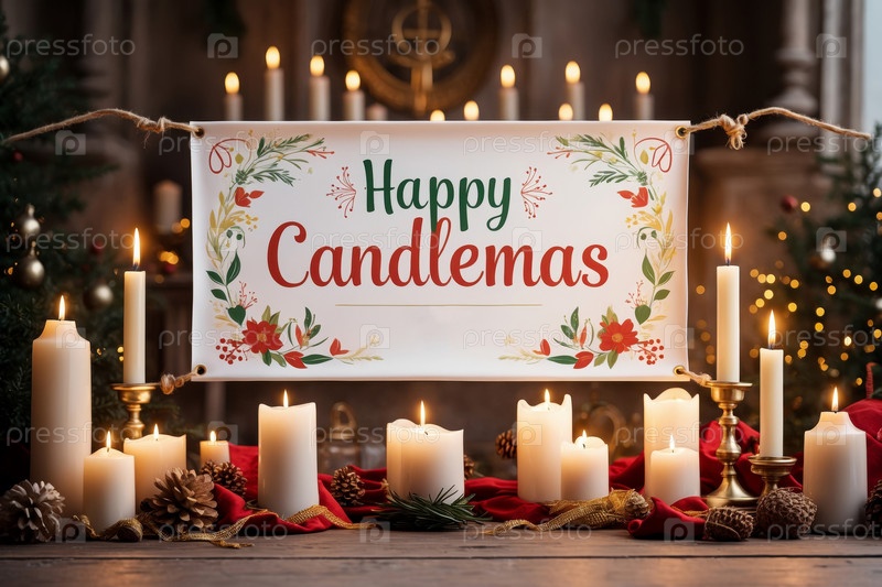 День свечей традиция праздничная открытка, надпись на свечах фонарь AI Generative