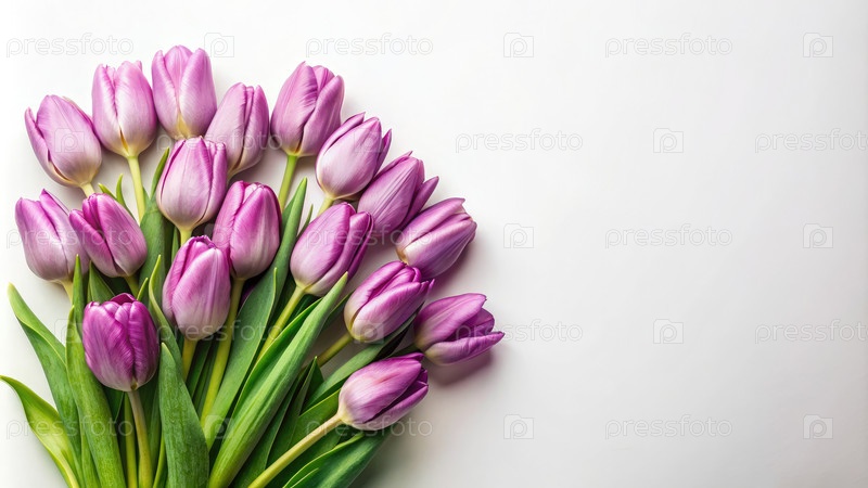 Букет лиловых тюльпанов на белом фоне