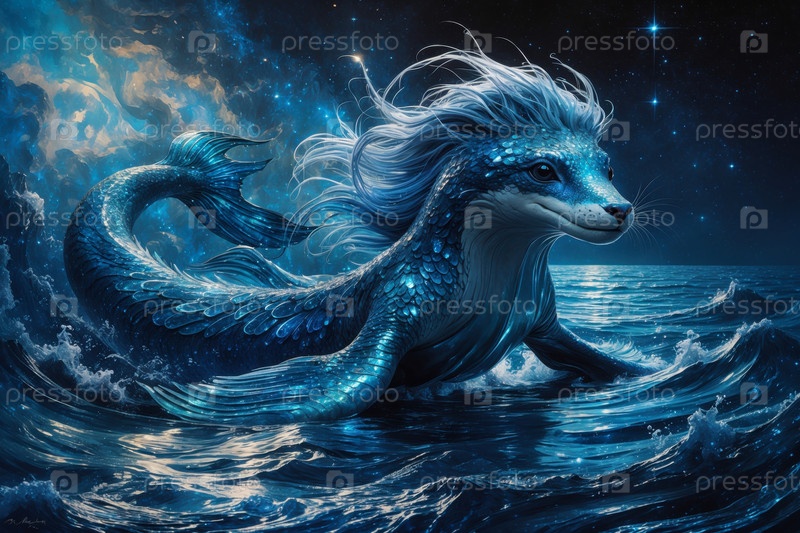 Фантастическое мифологическое животное из сказки, неоновое существо, живущее в пруду с водой AI Generative