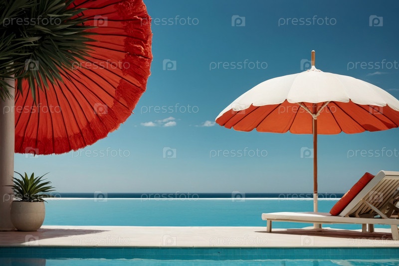 AI Generative Летний фон с бассейном голубая вода на отдыхе в отеле у моря и океана