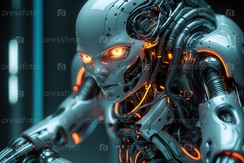 AI Generative Portrait будущий робот с искусственным интеллектом, футуристическая компьютерная технология завтрашнего дня