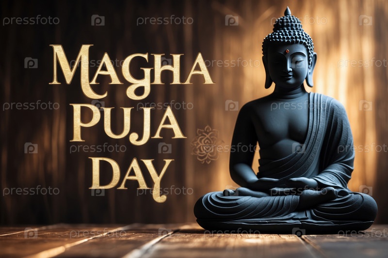 День Магха-Пуджи Традиционная буддийская открытка с поздравлениями, Будда и Его ученики AI Generative