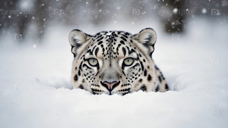 Величественный снежный леопард бродит по тихому зимнему ландшафту, захваченному в момент тишины среди падающих снегопадов Generative AI