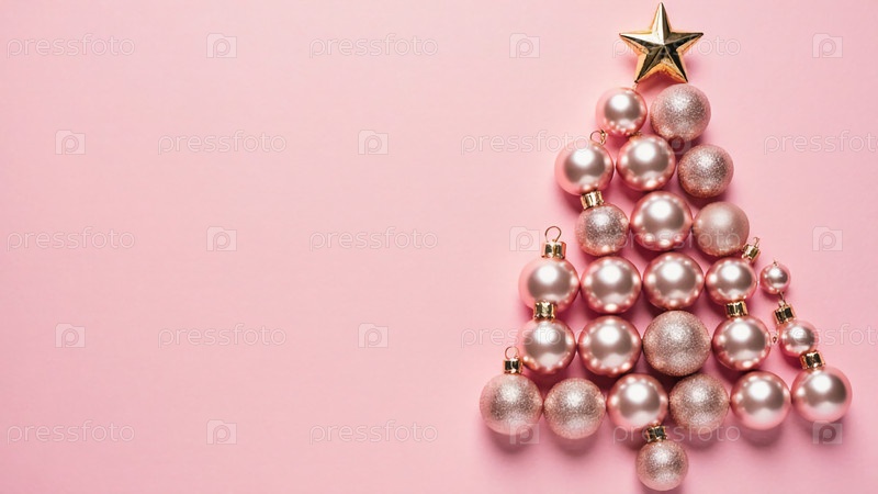 Потрясающая розовая елка из блестящих шаров и золотой звезды создает праздничную атмосферу генеративного искусственного интеллекта