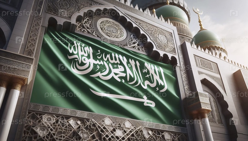 Саудовский флаг в исламских геометрических узорах, Ai generated image