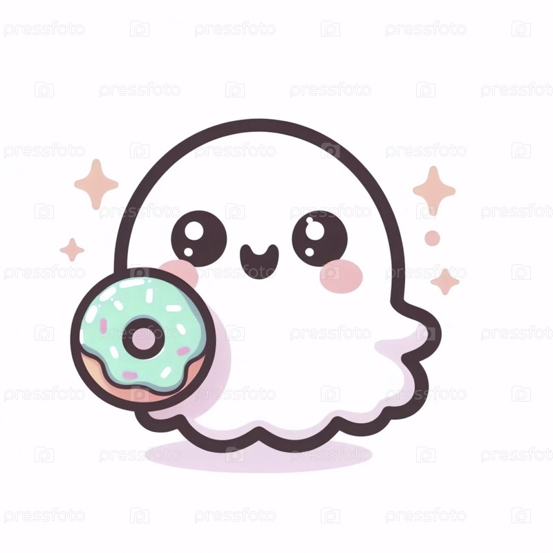 Призрак кавайи с художественным принтом пончиков, Ai generated image