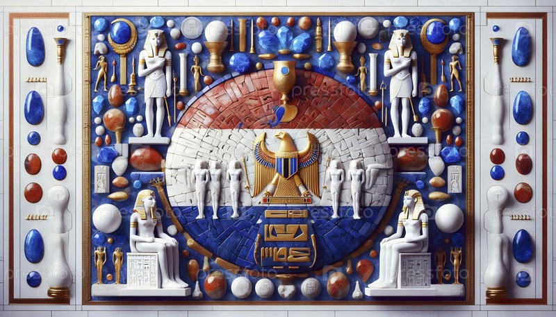 Египетский флаг в фараонских артефактах и иероглифах, Ai generated image