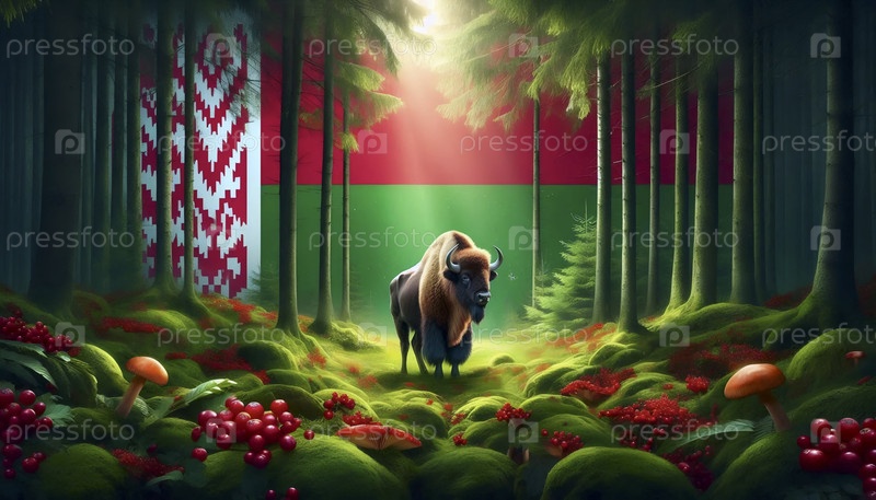 Белорусский флаг в заповеднике первобытных лесов и зубов, Ai generated image