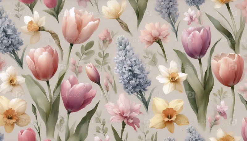 Нежный акварельный цвет цветов для весны производит бесшовные узоры, Ai generated image