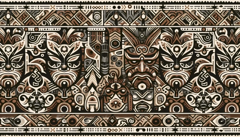 Смелая племенная маска и символ с бесшовным узором, Ai generated image